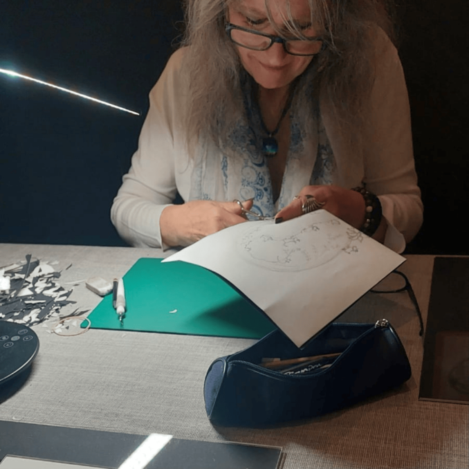 Die gelernte Lehrerin Elisabeth Nicollier widmet sich seit über zwanzig Jahren der Papierherstellung. 2004 entdeckte sie die Kunst des pflanzenbasierten Papiers – ein Wendepunkt, der sie dazu brachte, sich diesem alten Handwerk zu widmen. Sie lebt in einem Bergdorf und sammelt Pflanzenfasern aus der umliegenden Natur, um ihre Arbeit damit zu bereichern. Gleichzeitig entdeckte sie während ihres Aufenthalts in der Region Pays-d’Enhaut die Technik des Papierschneidens, die sich als natürliche Erweiterung ihrer Praxis erwies und ihr eine weitere Dimension der Papierarbeit eröffnete.