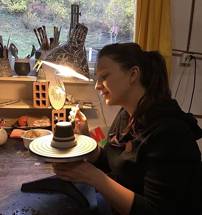 Après une formation de céramiste, Julie Crettol Diaz s’installe dans un atelier partagé à Montreux où elle crée des pièces utilitaires et décoratives, des sculptures et des bijoux. En parallèle, elle anime un atelier de céramique pour adolescents en recherche de solution professionnelle pendant 7 ans avant de quitter la Riviera pour revenir s’installer en terres valaisannes.