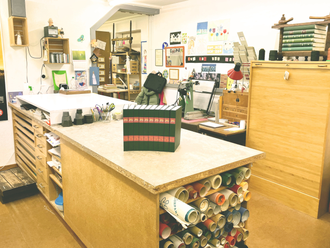 Dans son atelier situé au bord du Doubs, Myriam Dubey perpétue un savoir-faire qui remonte jusqu’aux moines copistes du Moyen Âge. Avec ses deux presses, sa machine à coudre et ses différents outils, elle manipule le papier, le parchemin, le cuir, les pinceaux et la colle pour donner vie à ses ouvrages, le tout avec les gestes lents et précis qu'exige la reliure artisanale.