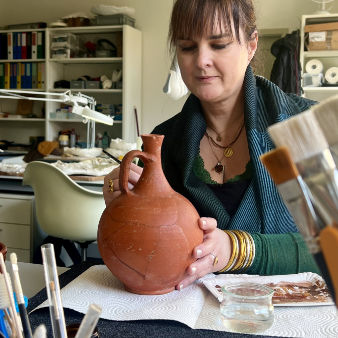 Rêvant de redonner leur éclat aux œuvres usées par les ans, Martine Rochat se forme à la restauration d’art à Florence. De retour en Suisse, elle est engagée par le Musée d’archéologie de Lausanne puis à la section d’archéologie et paléontologie du Canton du Jura pour travailler sur les objets sortant des fouilles de l’A16. Elle est actuellement préparatrice-restauratrice au laboratoire de Jurassica.